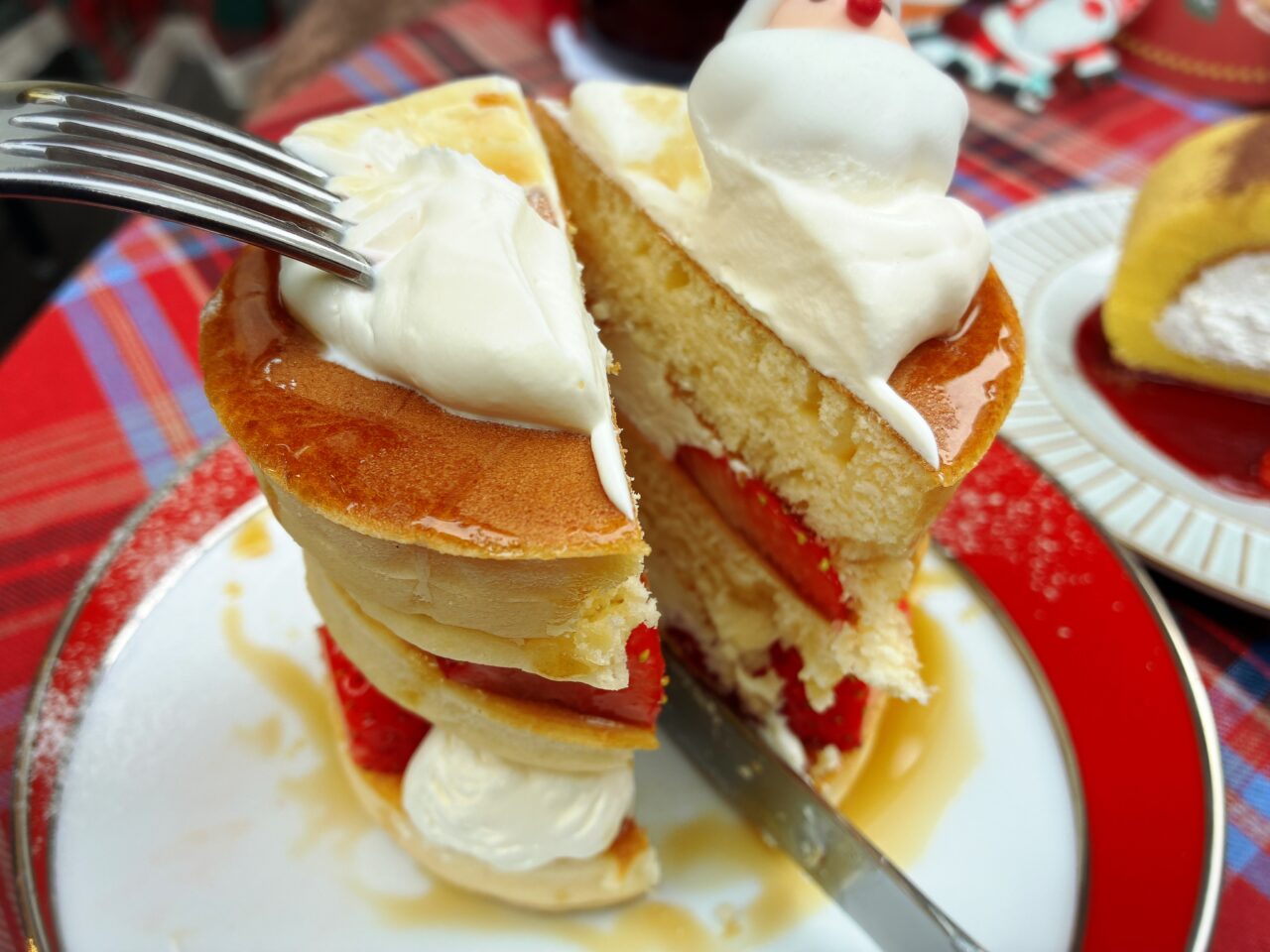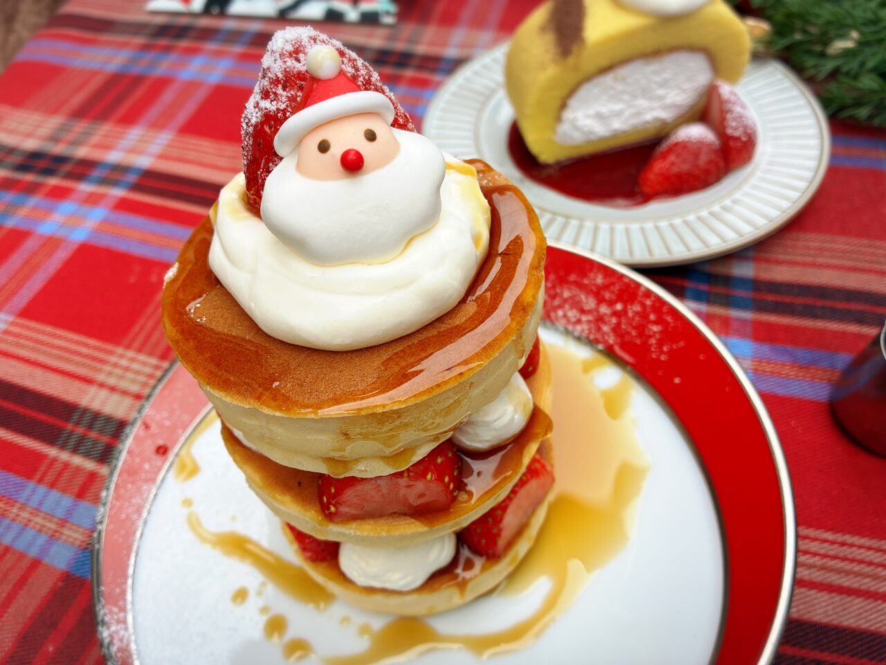 「クリスマスホットケーキ」は、ふわふわのパンケーキに甘酸っぱい苺がたっぷりサンド!