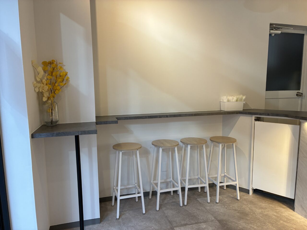 両端にはイートインスペースも!食べ歩きだけでなく、ゆっくり味わえるのも嬉しいポイントです。