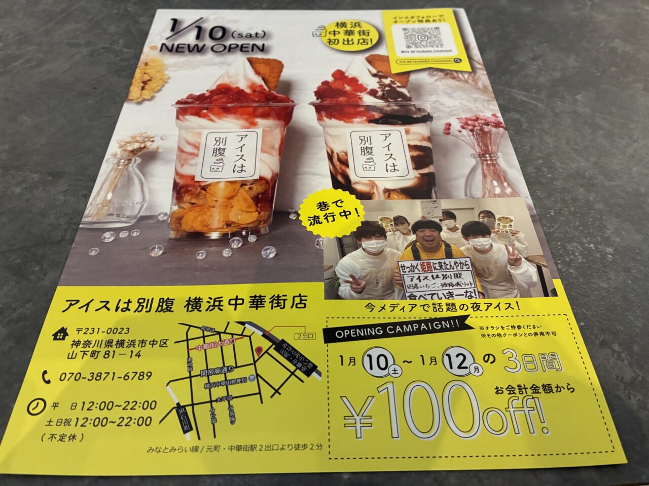 「アイスは別腹 横浜中華街店」がオープンする場所は、2025年10月に閉店したパフェ&アイス テイクアウト専門店「メゾン ド アイス 横浜中華街」の跡地。元町・中華街駅から徒歩3分というアクセスの良さも魅力で、観光や食べ歩きの途中にも立ち寄りやすい立地です。