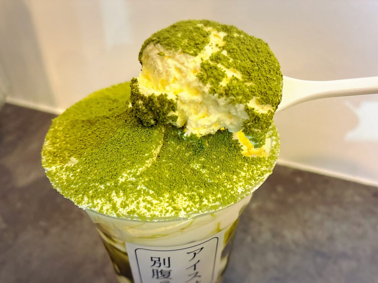 マスカルボーネホイップクリームと宇治抹茶パウダーの組み合わせがたまらない一品。まろやかなソフトクリームとの相性も抜群で、全体のバランスがとても良い。食べ進めると、サクサク食感のコーンフレークに濃厚な抹茶ソースがしっかり染み込み、味わいに変化が。和と洋、それぞれの魅力を贅沢に楽しめるパフェで、大満足の美味しさでした!
