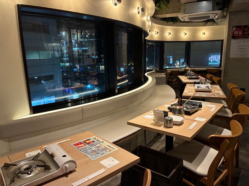 入店するとビックリ!大きな窓から横浜の夜景を望むことができるテーブル席。開放的で、とってもお洒落な雰囲気です。