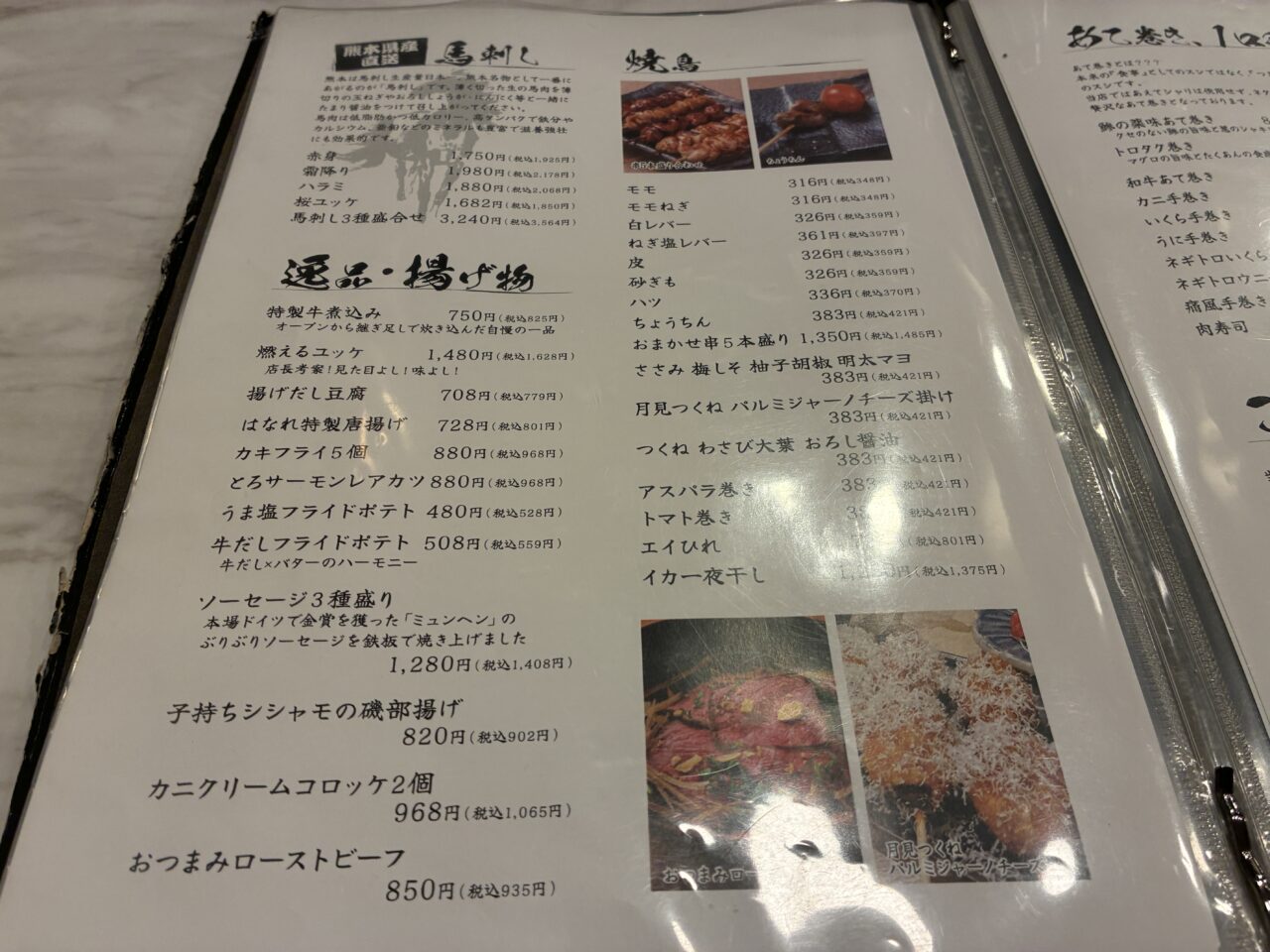 海鮮だけでなく、「馬刺し」や「焼鳥」、「揚げ物」といった料理も揃っており、種類の多さに驚かされます。