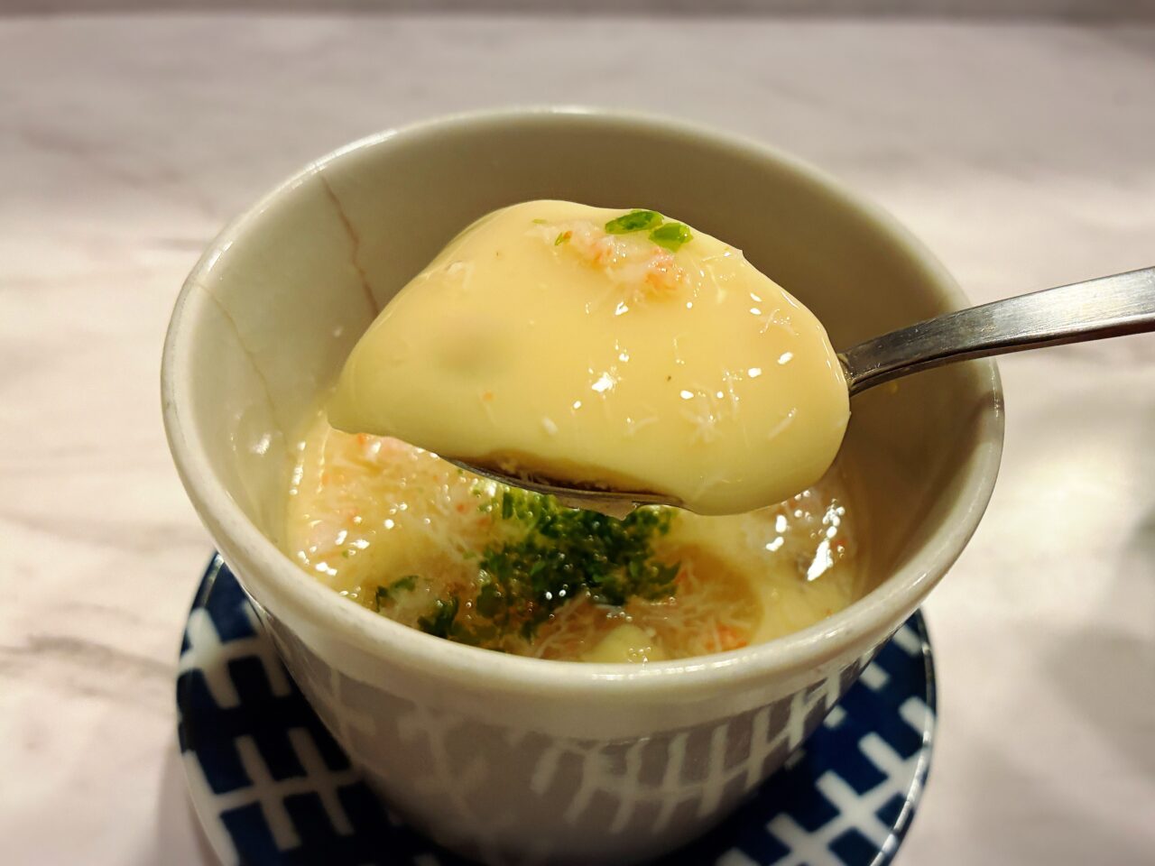出汁の風味が広がる優しい味わいで、なめらかな口当たり。何度でも食べたくなる一品でした。
