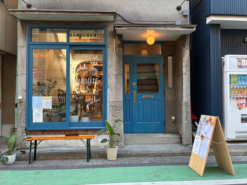 お店の目印は爽やかなブルー色のドアや窓枠。元は、お店の方のおばあちゃん家。思い出を受け継いでたくさんの人が集う場所としてカフェ+アトリエに生まれ変わったんだとか♪