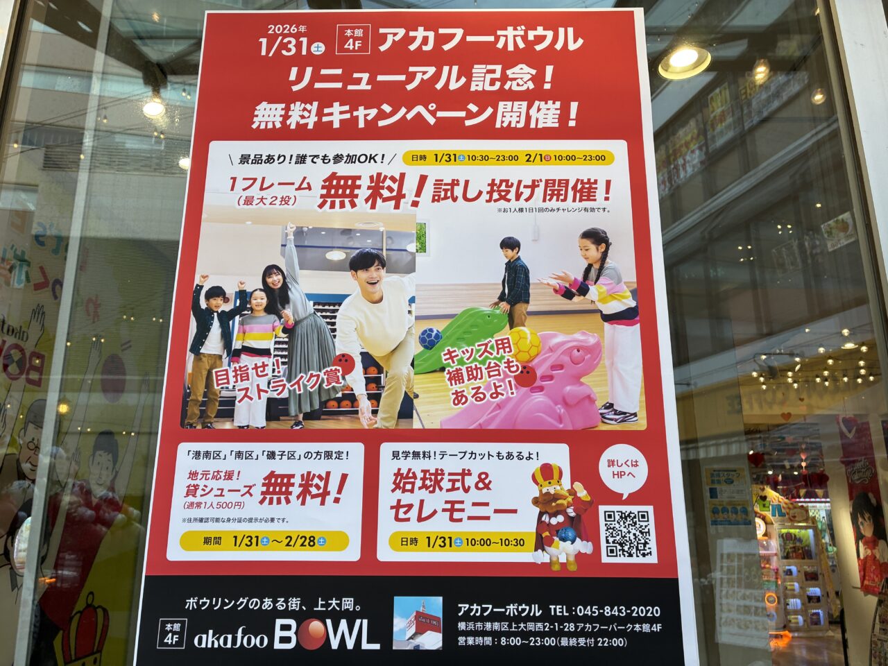 上大岡駅から徒歩2分のところにある人気の商業施設「アカフーパーク」内にある、ボウリング場「アカフーボウル」が2026年1月31日にリニューアルオープンしました!1972年の創業以来、老若男女、世代を超えて多くの方に親しまれてきました「アカフーボウル」。今回はリニューアルオープンした当日に開催されたセレモニーやリニューアル内容、今後のキャンペーン情報をご紹介したいと思います♪