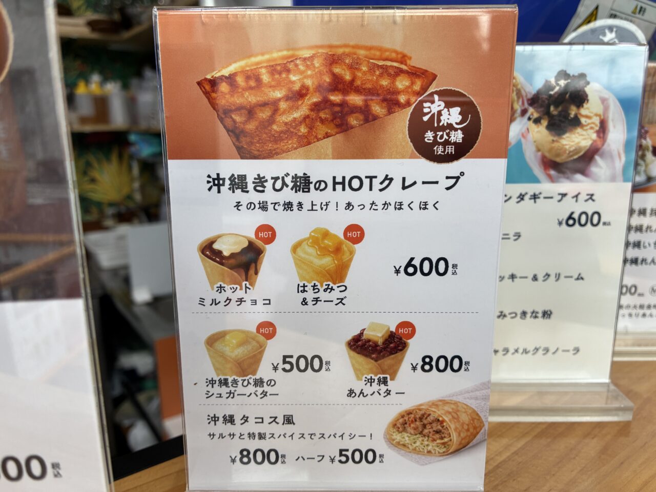 - 沖縄きび糖のクレープ「塩キャラメルちんすこう」※アイスをトッピング