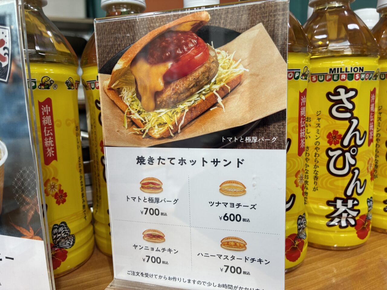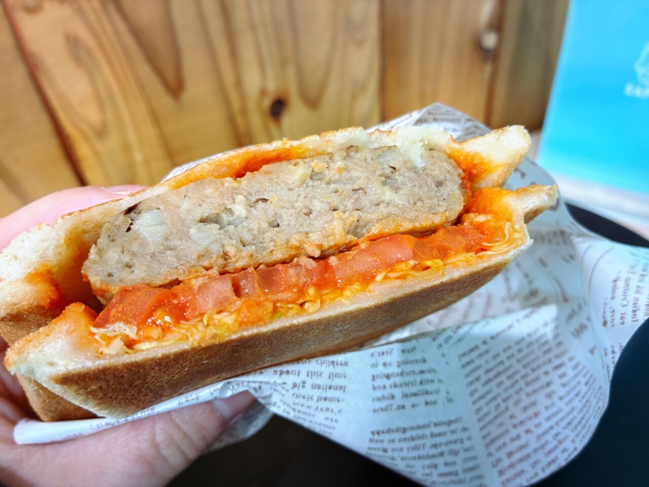 - 焼きたてホットサンド「トマトと極厚バーグ」