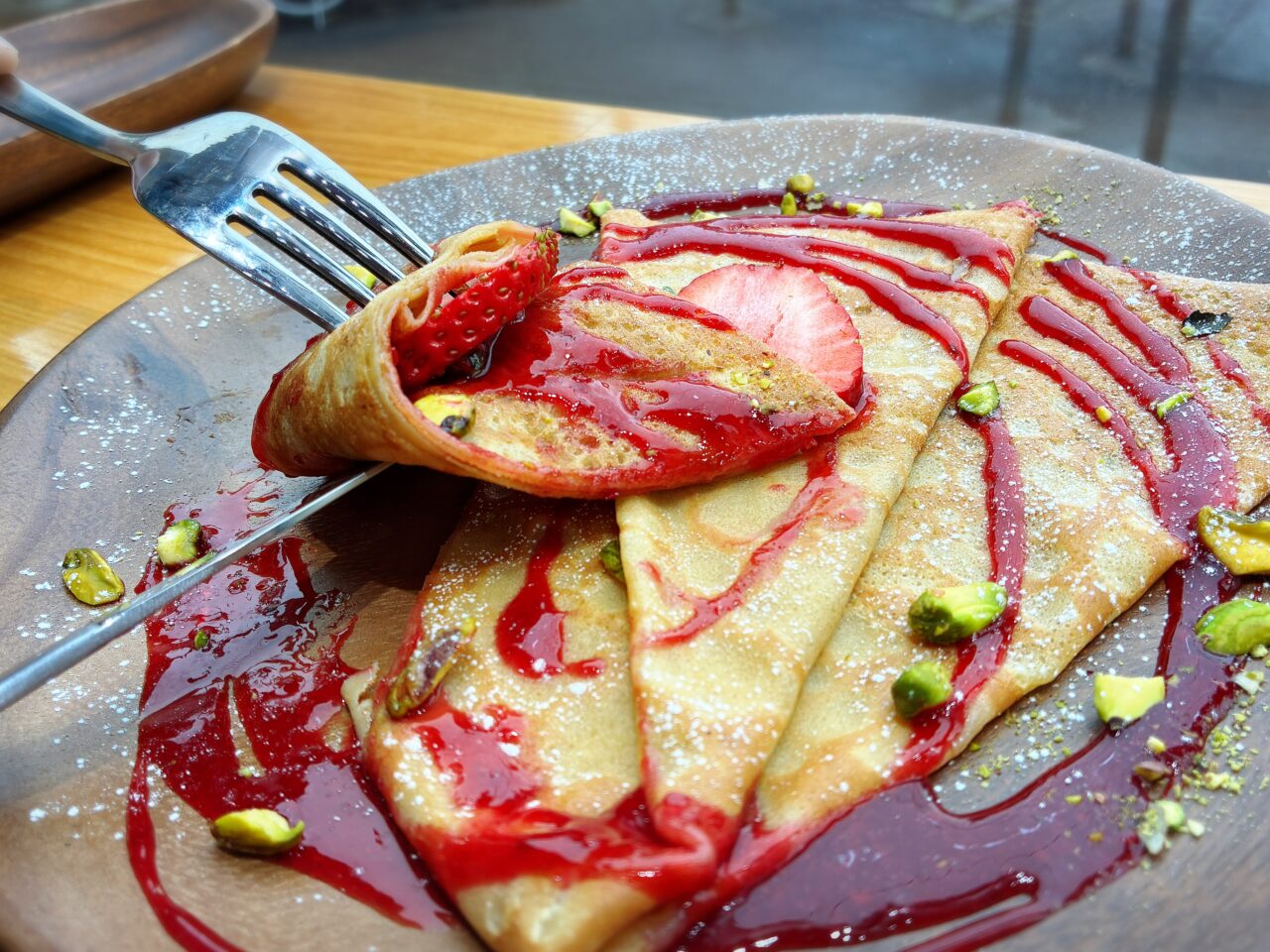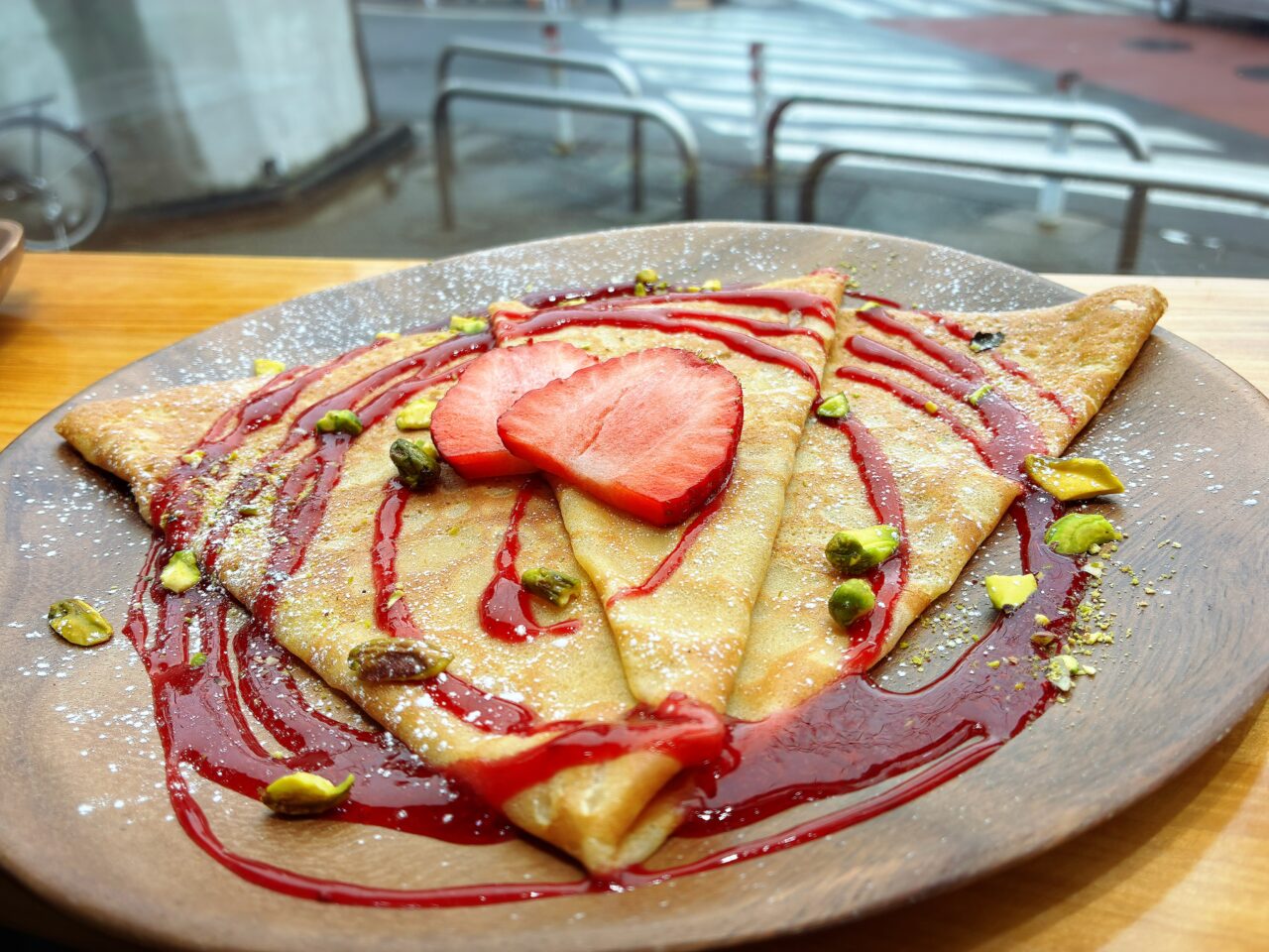 ひと口いただくと、甘酸っぱいいちごのフレッシュな風味がふわっと広がり、濃厚なフランボワーズソースがやさしく重なります。きび糖のまろやかな甘さが加わることで、酸味がとがりすぎず、奥行きのある味わいに。薄生地でしっとりとしたクレープ生地との相性も抜群で、最後までバランスよく楽しめました。見た目だけでなく、味わいもしっかり満足できるデザートクレープです!